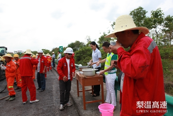 为便于管理,500里梨温高速分布了5个管理处13个收费站,而今年5月开始,这个10年前设计的高速公路开始安排大修,有的路面单幅交通管制,分流、保畅的任务在高温天气下异常突显,梨温公司负责人魏和仁等一行常常来回跑,常常看望慰问奋战在一线的广大员工。