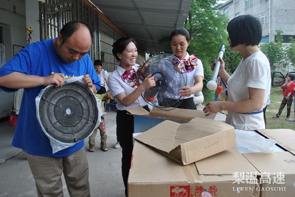 今年“六·一”适逢“端午”,姑娘们更没有忘记这些生活在无声世界的小朋友们,一早就来到康复中心陪伴他们。孩子们看到她们时欢欣雀跃,每个小脸都露出了灿烂的笑容。据姑娘们说,考虑到酷暑天气也将来临,站里还为孩子们送来了电风扇等物品,希望炎炎夏日孩子们有一个清凉的学习、生活环境。
