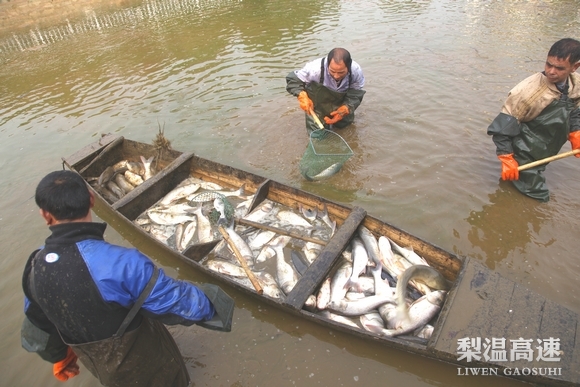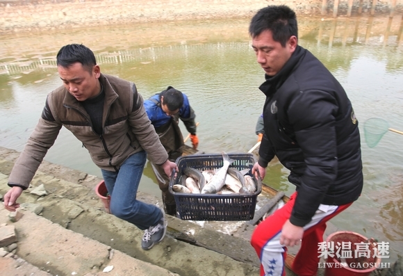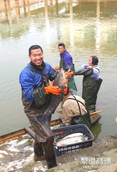 临近年关,梨温高速一处鱼塘开始捕捞,总计有上万斤鱼儿起舱。近日在捕捞现场看到,一条条鲜美肥硕的草鱼、青鱼、鲢鱼、鲫鱼穿水乱跳,工人们捞鱼则忙个不停,在场围观的大伙儿笑声不断,生态园里又是一个丰收好风光。