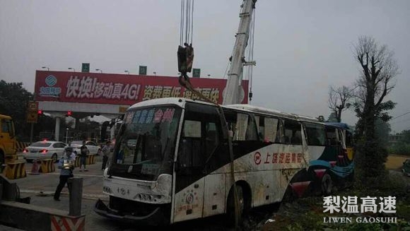 梨温高速:收费员合力营救侧翻大客车