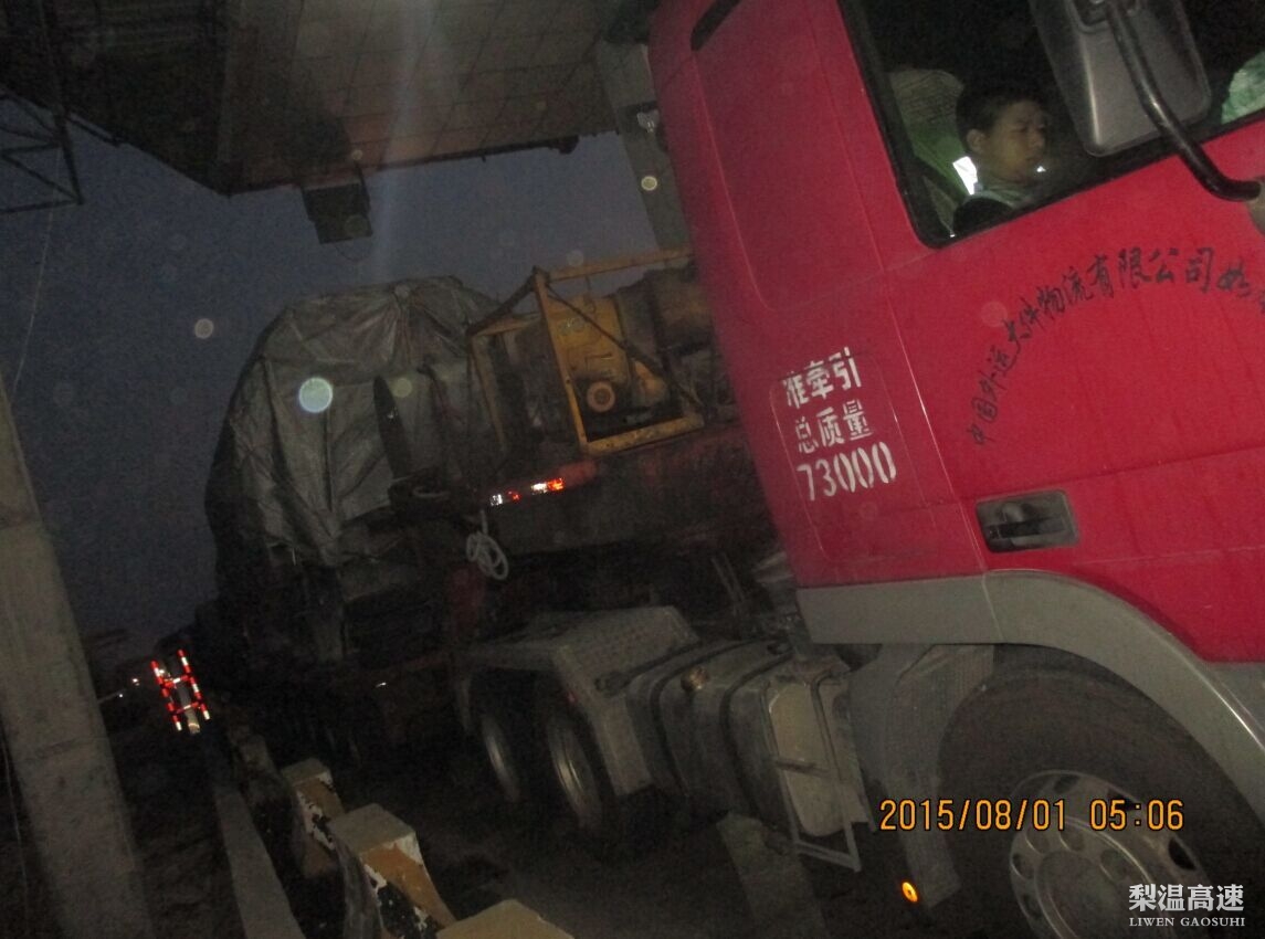 当日01:50分左右,车牌为苏FG13**的157型特种半挂车缓缓驶入广丰收费站102车道。电脑显示车子总量为60多吨,前后轴只相差10吨左右,当班收费员陈丽霞看看电脑上显示的数据,又看看车上装的大型设备,心生疑虑。凭借多年的收费经验,怀疑该车可能存在严重的逃费行为。立即通知班长宋建忠上前仔细查看该车。