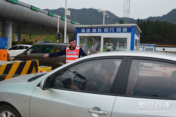 镜头三: 廖群,综合部人事劳资员,从梨温开通就扎根在梨园这个大家庭了。四十多岁的她看起来显得特别年轻,她平时总是爱笑嘻嘻的,但工作起来决不马虎,说一不二。在春运期间,她被安排在简易便携式岗亭里收费,那娴熟的业务技能,比起专职收费人员一点不逊色。所谓“台上一分钟,台下十年功”,这就是她平时经常下车道学习取经的成果,接卡、接钱、找零一气呵成,仅需3秒钟。每辆车驶来,她总是面带微笑重复着同样的话语:“你好,请交通行卡,请缴费,一路平安”。车主说到:“速度还挺快的吗?”她笑笑,快点好让你们尽快离开这呀。收费时,她经常一站就是四五小时不休息一下,口渴了就挨着水杯抿一下润润喉,腰酸了就自己捶捶,脚站酸了就动动,然后又继续她的收费工作,迎接下辆车的到来。