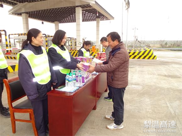 设立春运服务台,认真履行“有问必答、有求必应、有难必帮”的承诺。为过往司乘及时提供出行路线咨询、免费供应开水、应急药品、简易维修工具等便民服务,始终坚持做到急司乘之所急,想司乘之所想,竭尽全力做好延伸服务,为司乘排忧解难; 据不完全统计,春运期间,该站员工为司机提供导向服务5000余次,提供开水和方便面130余人次,义务推车3次,借助微信转账助司乘缴纳通行费10次,赢得了广大司乘人员的高度赞誉,树立了良好的窗口形象。