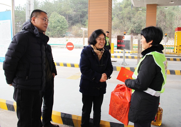 2月2日上午,省高速集团总经理任东红深入梨温高速沿线调研指导工作,看望慰问坚守一线岗位的干部职工,并代表集团领导班子给基层困难职工送去温暖和关怀,集团综合行政部部长陶光辉随同,南昌南管理中心领导万良红陪同。
