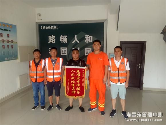 谢谢!真是太感谢你们养护人员的及时援助了!”8月20日下午,当事人将一面写有“人间处处有真情、危难之中伸援手”的锦旗送到杨梅岭养护站,对养护人员伸出援手的行为深表谢意。