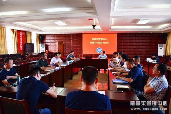 8月5日,南昌南管理中心党委组织中心组扩大学习。中心党委书记陈本华领学,中心党委委员参加学习。