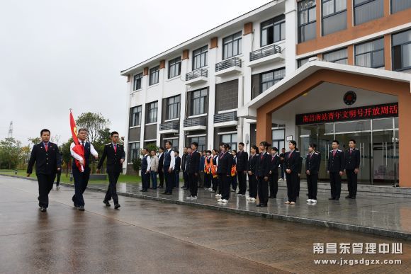 9月29日上午10时许,由南昌南收费所和南昌运输职业技术学校组成青年方队,列队参加升国旗仪式。升国旗小组踏着整齐方步,在洪亮的国歌声中,将鲜艳的五星红旗升起,大家庄严行注目礼,青年文明号开放周在升旗仪式中开幕。