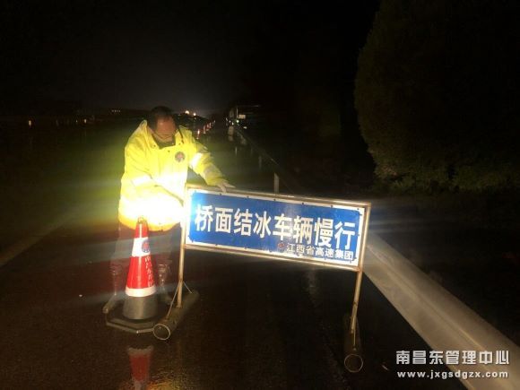 在沪昆高速、东昌高速及昌宁高速连接线,该中心每个养护站配置组建了一支20人以上的应急保畅队伍,严格待命,所属各养护站均提高日常巡查频率与力度,其中,夜间巡查2次以上,并着重对容易结冰的桥梁、路段定期进行温度检测,摆放安全标志牌,发现结冰情况立即消除隐患,确保降低行车风险。