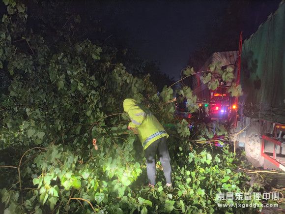 大树被风刮倒阻挡道路 广丰站快速反应保畅通