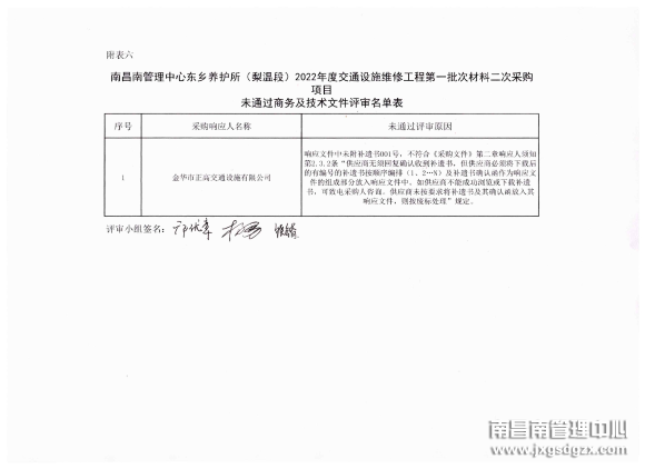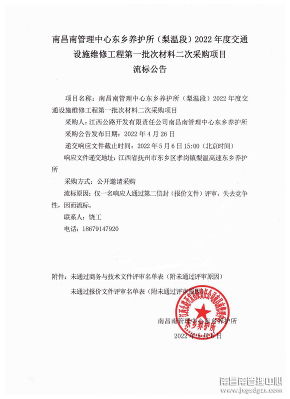 南昌南管理中心东乡养护所(梨温段)2022年度交通设施维修工程第一批次材料二次采购项目流标公告