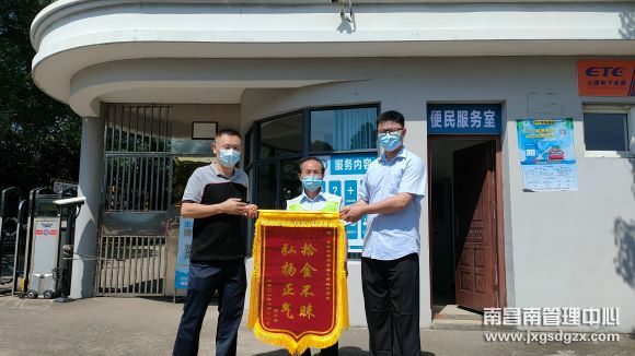 “手机落在收费站我们就放心了”,近日,一群众手抱锦旗,来到江西交投集团南昌南管理中心贵溪收费站门口,找到工作人员说明来意后表示连声感谢!