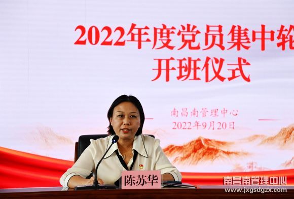 9月20至22日,南昌南管理中心举办2022年度党员集中轮训,党委书记陈苏华出席开班仪式并作动员讲话,党委委员、总经理万良红出席结业仪式并作总结讲话。轮训以视频会议形式开展,设主会场1个,分会场9个,中心190余名党员参训。