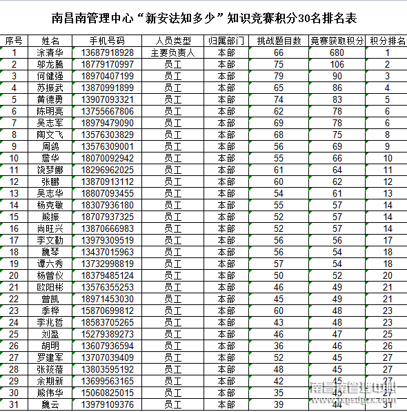 6月16日至6月30日,历时半个月“新安法知多少”知识竞赛活动日前结束,这场由南昌南管理中心工会联合安监部举办的网络知识竞赛活动参与人员达到800余人,活动取得理想成效。