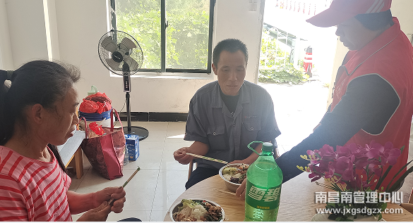 在了解事情经过后,工作人员将夫妻二人带到“悦畅志愿者服务”站休息,并为他们倒上热水,安抚其焦急情绪。在得知夫妻二人为了等车一天都没吃饭,李玲立马去食堂端了两份热乎乎的饭菜。
