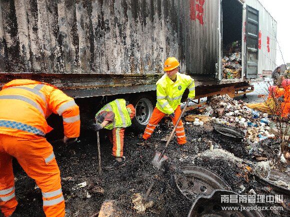 2月28日清晨5点40分左右,南昌南管理中心南昌南车辆救援大队罗湖中队接交警通知,在东昌高速昌傅方向K54发生一起半挂车自燃事故。