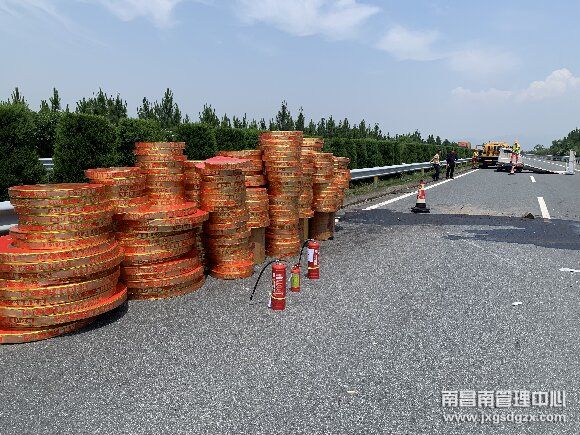 5月20日,一辆满载爆竹的小货车因为右后轮爆胎,在东昌高速抚州方向k137公桩处侧翻,隐患巨大、情况紧急。南昌南管理中心车辆救援大队洛市中队快速反应,高效处置,成功完成救援处置任务。