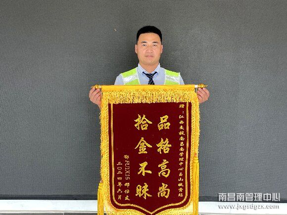 6月20日上午,玉山站的综合办公室,来了一名郑姓的青年,他手执一面锦旗,指名找一位叫肖贵军的收费员。当值班领导用对讲机,将肖贵军唤来时,郑姓青年连忙主动握着肖贵军的手,激动与感激之情溢于言表。可肖贵军却是一脸狐疑,声称并不认识郑姓青年,不知谢在何意?于是,郑姓青年便娓娓道出事情的前因后果。