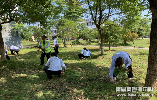 当天上午,该站干部带头,大家携带铲子、扫把、锯子等工具,前往站门口、办公楼前、宿舍楼前及食堂门口等地点,大家分工明确,干劲十足,或手拔或挖铲,经数小时努力,杂草、枯枝被有效清理,草坪绿化变得更加整洁、树木变得更加美观。