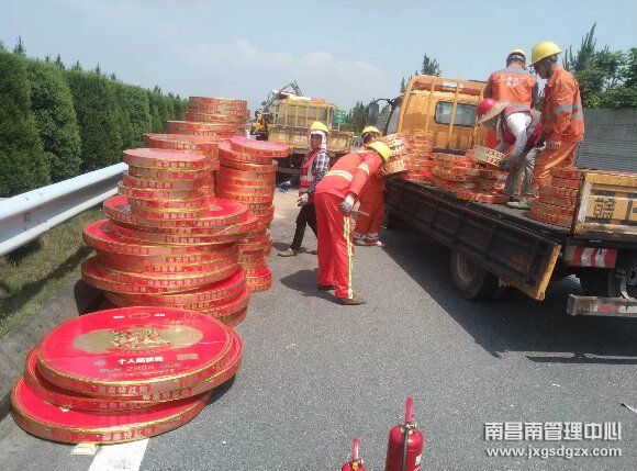 5月16日中午12时许,南昌南管理中心东乡养护所新干养护站接到报警电话:K137+280左幅有一辆大货车发生撞护栏事故。当养护站技术员到达事故现场后,才发现该辆货车上居然装载着满满一车的爆竹,现场车辆侧翻,爆竹散落一地。